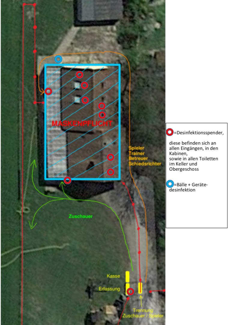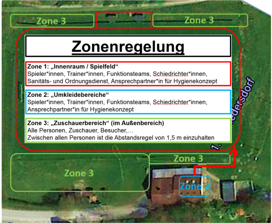 - Im öffentlicehn Raum sowie auf dem Sportgelände ist ein Mindestabstand von 1,5 m zu allen Menschen einzuhalten, mit denen man nicht im gemeinsamen Haushalt