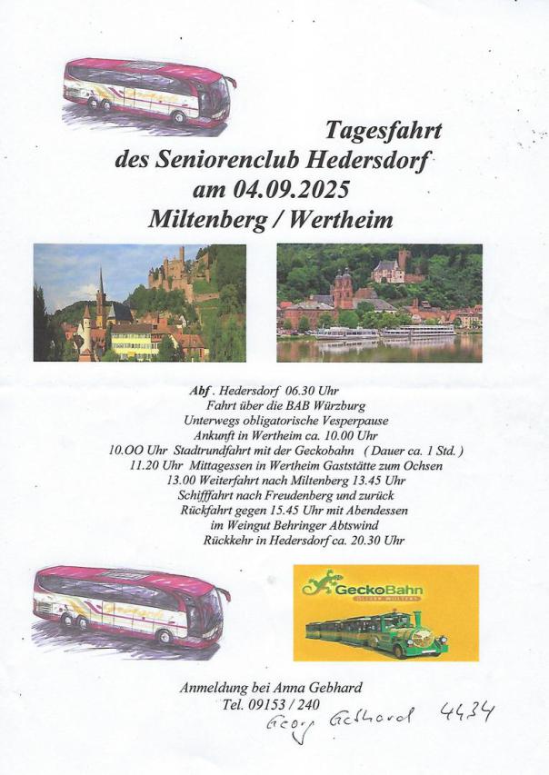 Seniorenfahrt nach Miltenberg/Wertheim am 04.09.2025